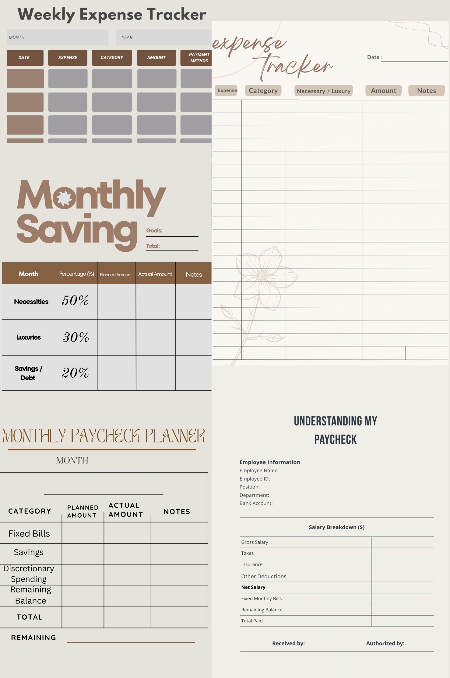 Inside this system, you’ll get practical, ready-to-use tables at the end of every chapter that make managing your money easy and actionable. Track your daily expenses, understand your paycheck, categorize your spending, apply salary allocation methods, plan for bills and savings, manage your debts, and review your progress monthly. Each table is designed to guide you step by step so you can take control of your finances, stop living paycheck to paycheck, and start building real financial stability.